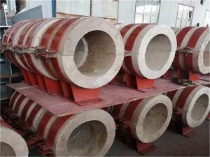 經(jīng)過多年生產(chǎn)實踐及與研究機(jī)構(gòu)的多次合作,在傳統(tǒng)絕熱材料配方的基礎(chǔ)上,開發(fā)出了以多種硅酸鹽混合物為基礎(chǔ)骨架原料,配以輔料,經(jīng)過嚴(yán)格的配比混合靜壓成型烘干檢驗等多道工藝加工而成。成型后的絕熱材料具備硬度高、強(qiáng)度好、導(dǎo)熱系數(shù)小等特點(diǎn)。隔熱管托可分為多種形式,如滑動管托,固定管托,以及導(dǎo)向管托。對于滑動管托來說,底座與管托之間的摩擦系數(shù)也是影響管托參數(shù)的一個重要性能指標(biāo)。采用不銹鋼板改性聚四氟乙烯板相接觸;這樣做的目的是大可能減少了管托與底部滑動板之間的摩擦。隔熱管托一般安裝于室外化工管廊上,工作環(huán)境中除有常規(guī)的大氣腐蝕外,還伴有少量的化學(xué)物質(zhì)腐蝕。若管托外部不采取特種防腐處理措施,往往使用一年下來其外表就銹跡斑斑。